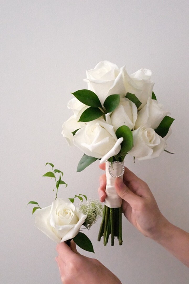순백의 색감을 가진 향기로운 마릴린장미로 구성되어 있어