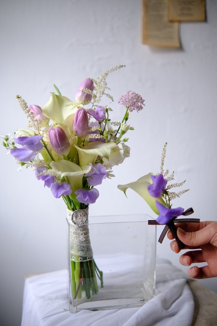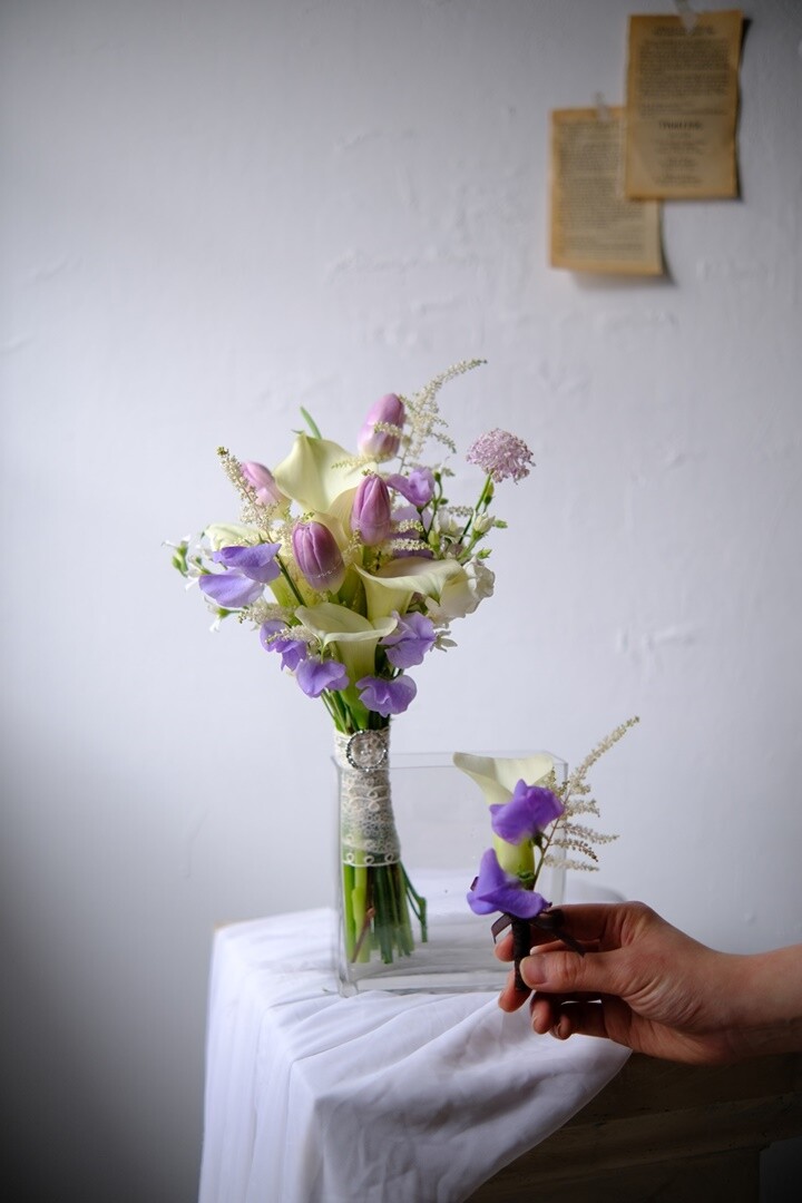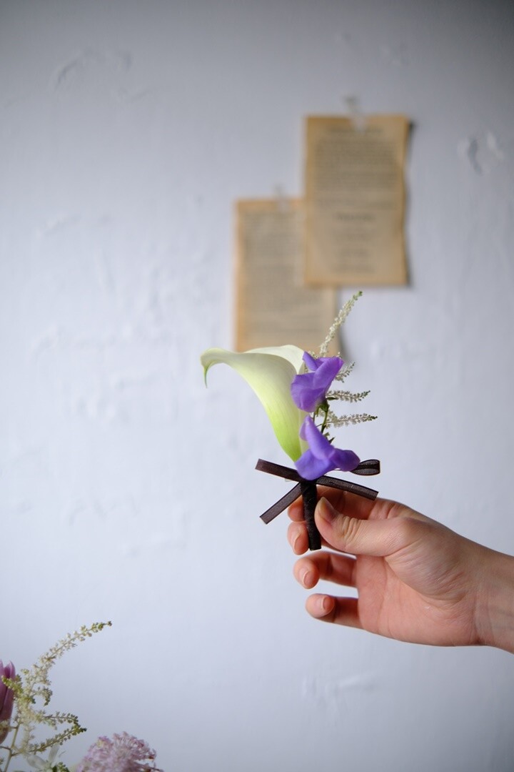 화이트카라와 은은한 라벤더 컬러의 스위트피로 구성되어 있어