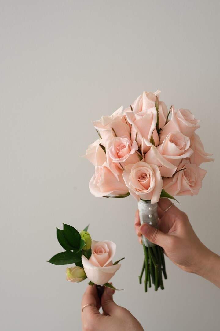 사랑의 맹새라는 꽃말을 가지고 있는 핑크피치톤의 아약스장미로 구성되어 있어