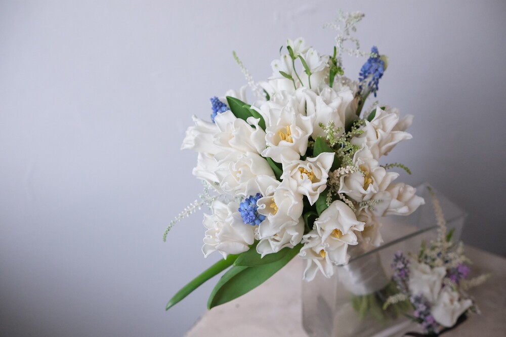 화이트 별튤립과 신비로운 색상의 무스카리